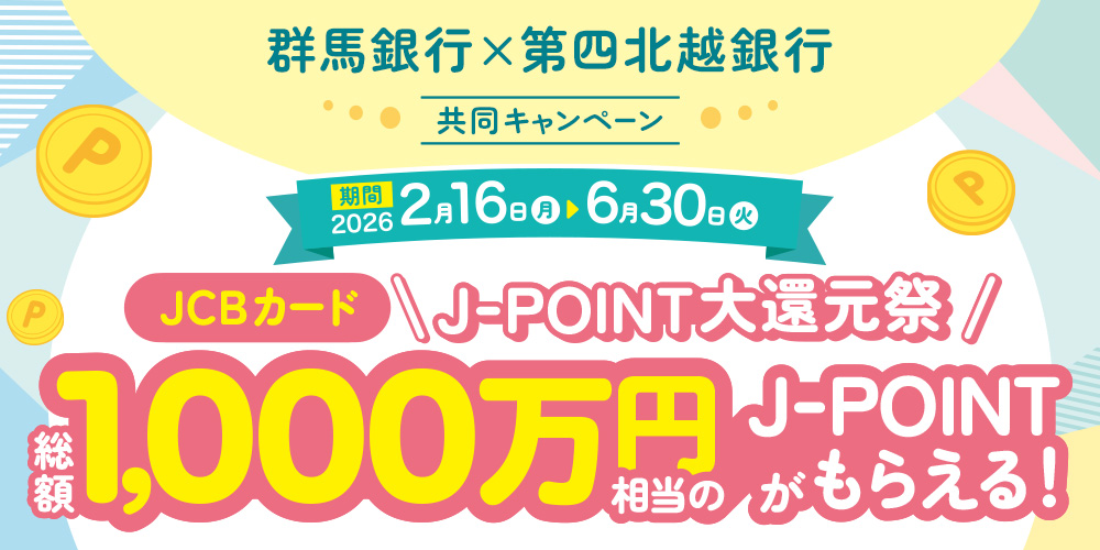 口座とともにお作りいただく下記のキャッシュカードをご利用いただいた方の中から、抽選で最大10万円相当のJ-POINTがもらえるおトクなキャンペーンです!
