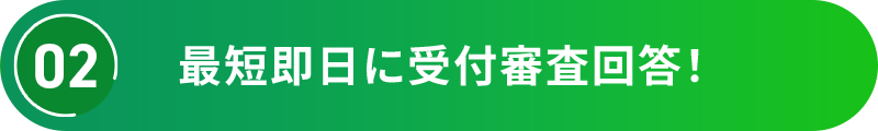 インターネットでお申し込みされてから最短で当日に申込受付審査の結果をメールでご連絡差し上げます。その後、必要書類をご提出いただき、正式審査承認後、お借り入れとなります。