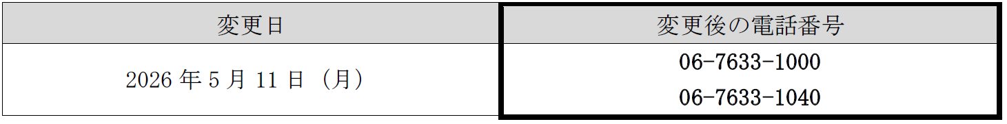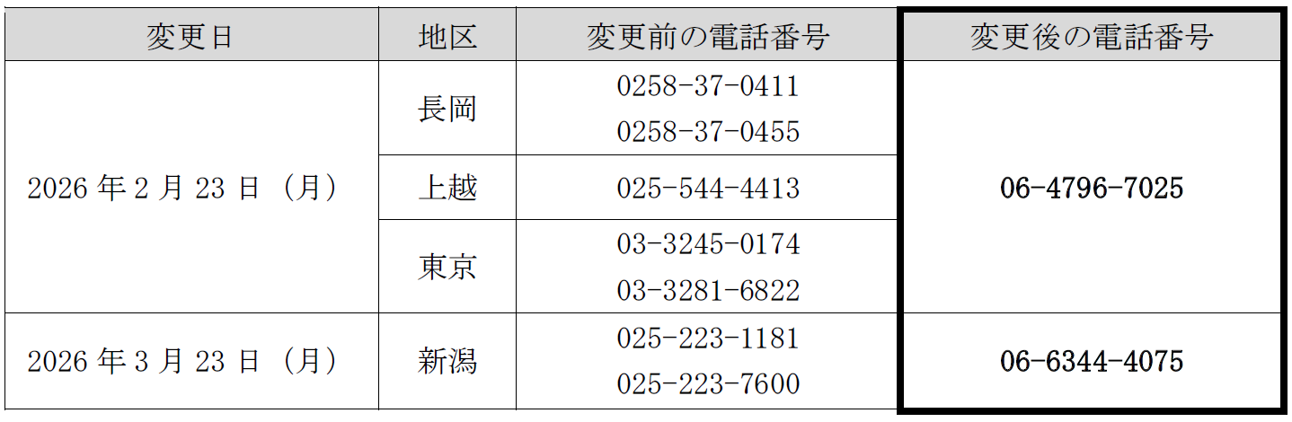 - 変更日以降は下表の新しい電話番号をご利用ください。