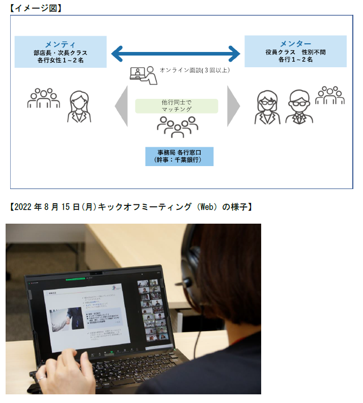 本制度は、将来の幹部候補層となる女性行員のキャリア形成やリーダーシップ向上を目指す各行横断型のメンタリング制度で、役員がメンターに、女性管理職がメンティとなり、TSUBASAアライアンスのネットワークを活かした参加行同士の組み合わせによるメンタリング※2を実施することが特長です。