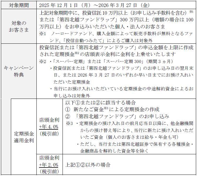 株式会社 第四北越銀行(頭取:殖栗 道郎)は、資産形成・資産運用をご検討のお客さま向けに、「自分にあった資産運用をみつけよう バランスパックキャンペーン」を、下記のとおり実施しますのでお知らせいたします。