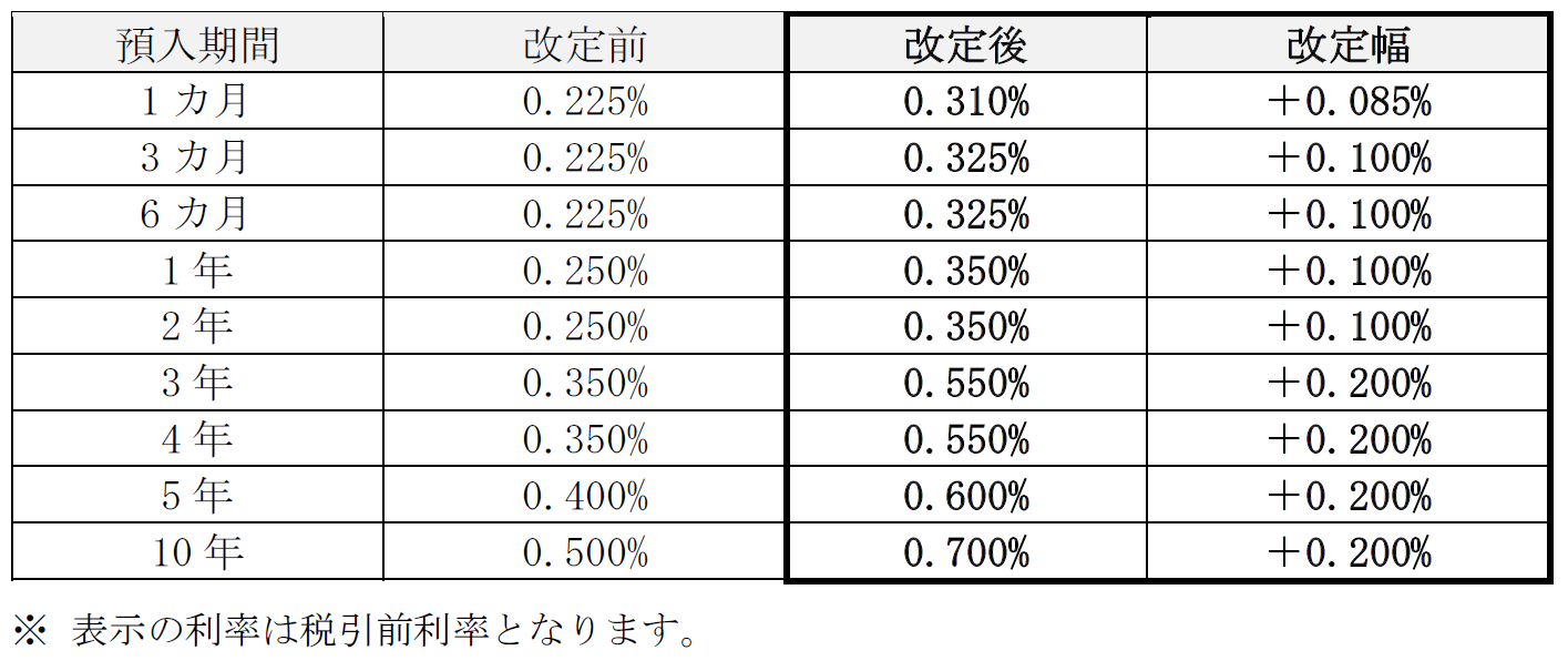 円定期預金金利の引き上げについて