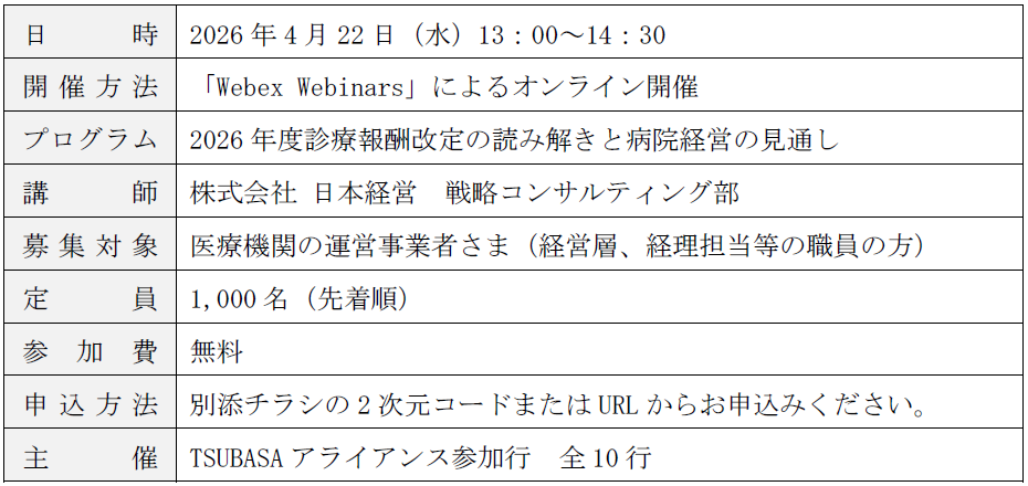 「診療報酬改定WEBセミナー」の開催について~TSUBASAアライアンス連携施策~