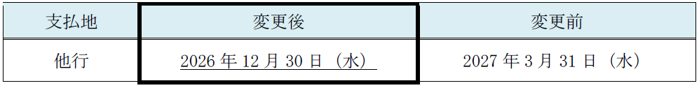 ・他行を支払地とする手形・小切手の窓口入金の受付終了日を、以下のとおり変更します。