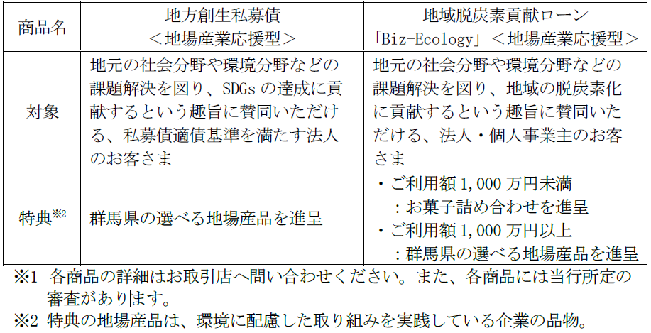 当行と群馬銀行は、これらの商品の取り扱いを通じて、お客さまを資金面でサポートするとともに、新潟・群馬両県の地域の地場産業を応援いたします。